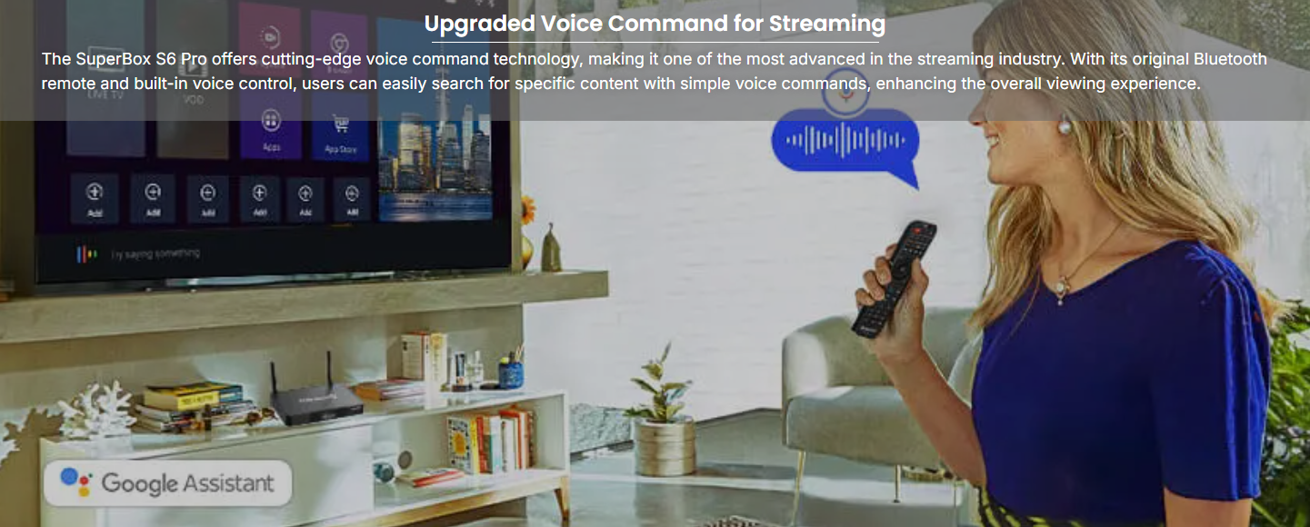 - Upgraded Voice Control: The Superbox s6 has an enhanced voice command, so users of all ages may easily search TV channels, movies, and shows.